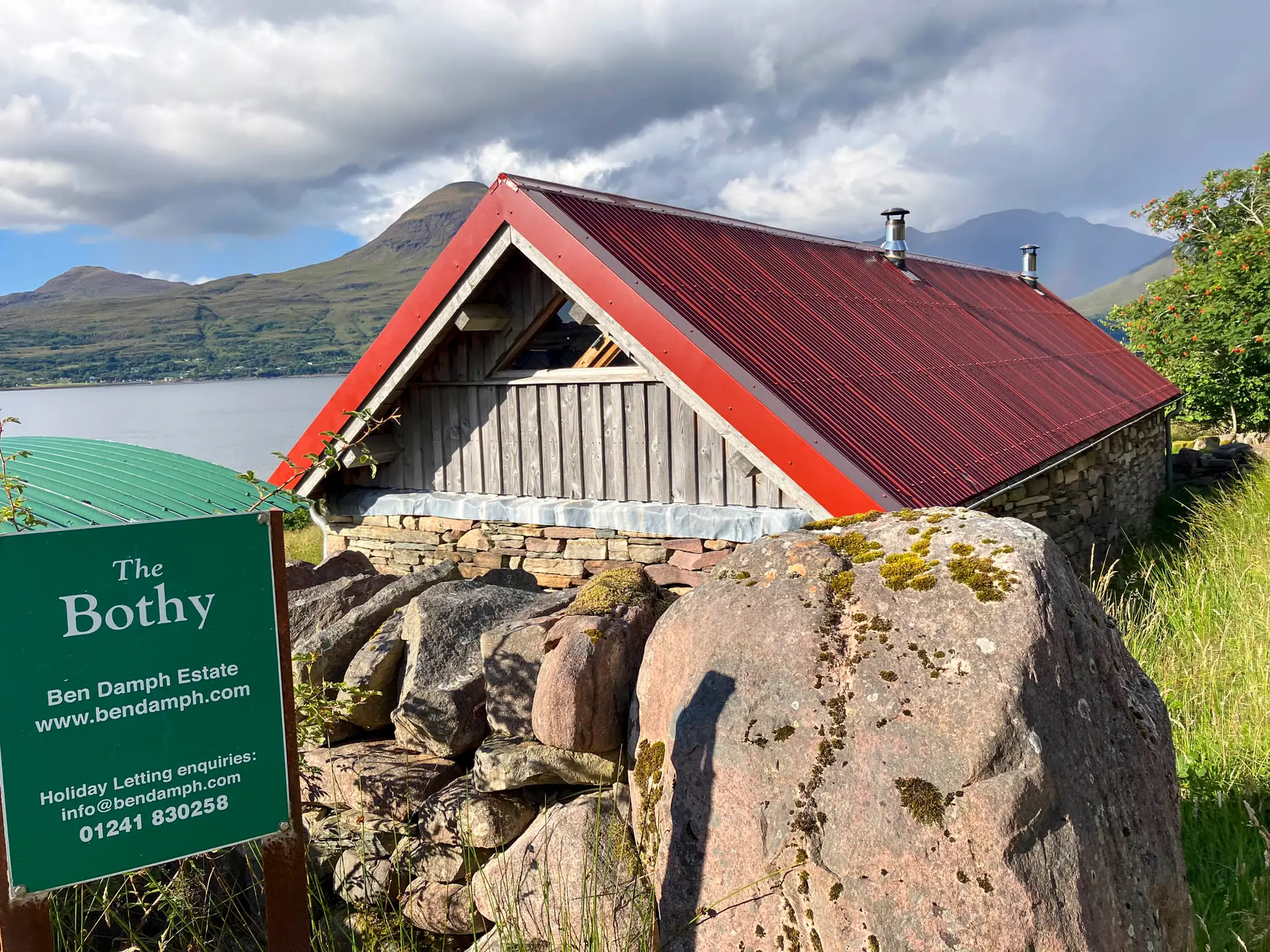 A smart Bothy situated in a superb position overlooking Loch Torridon with wonderful views over to the Torridon mountains and Alligin. The Bothy is beside the track leading down to the Ben Damph Lodge, not far from the Balgy river and just a stride down to the shore of Loch Torridon. It has been lovingly restored by skilled Yorkshire Stone Masons and an expert timber framer in conjunction with local craftsmen and builders.
